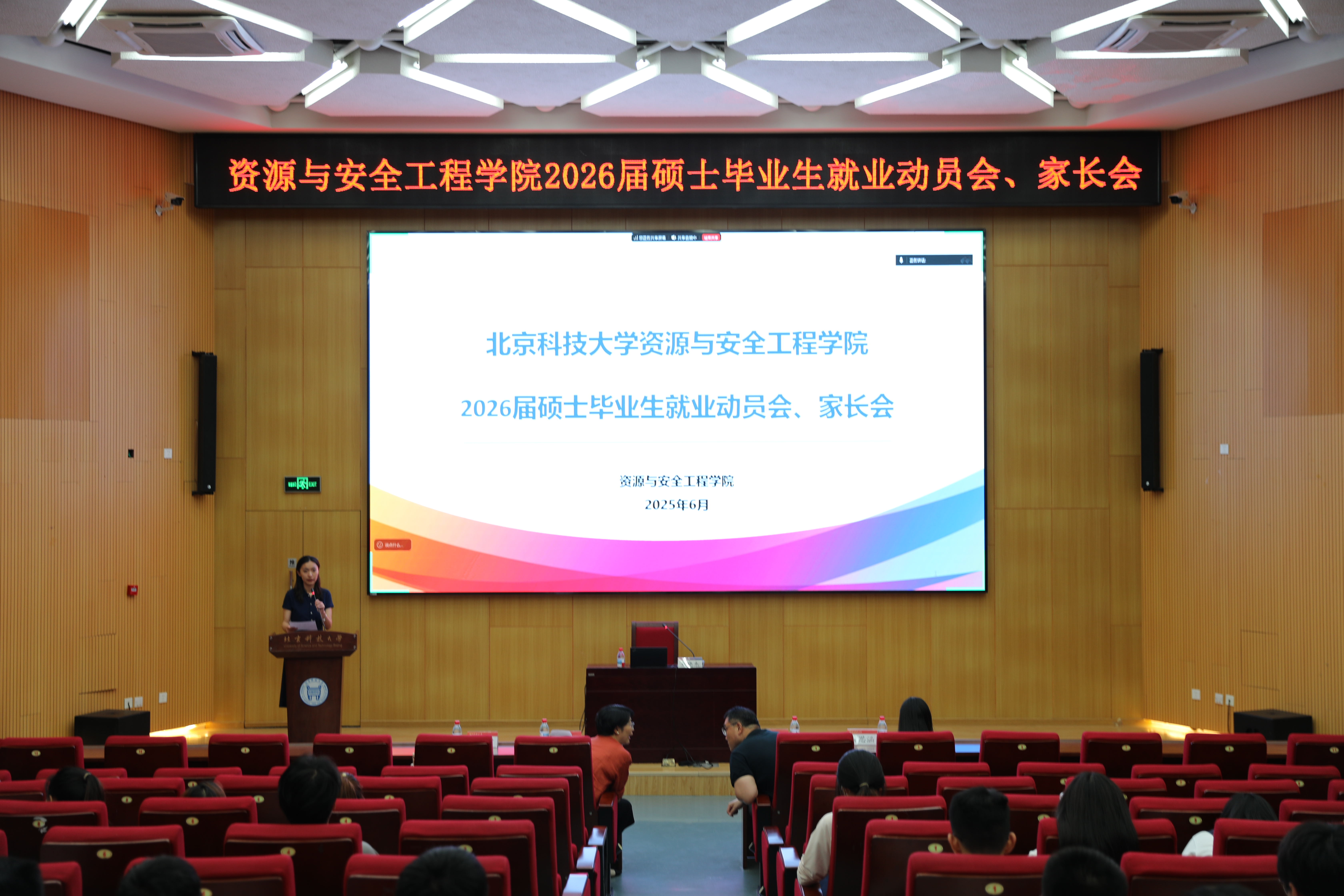 为助力2026届硕士毕业生更好地规划就业方向,加强学院与毕业生及家长的沟通协作,2025年6月9日,英国威廉希尔公司在学术报告厅召开了2026届硕士毕业生就业动员会、家长会。人才招聘处副处长、就业指导中心主任刘晓杰,资源与安全工程公司党委副书记、副经理贾兆义,学院就业指导教师陈康宁以及2026届全体硕士毕业生及家长通过线上线下相结合的方式参与了此次会议。