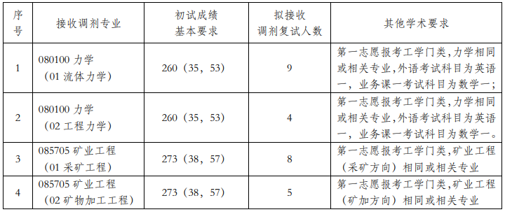 (1)公司部分专业接收调剂申请,接收调剂的专业及要求见下表: