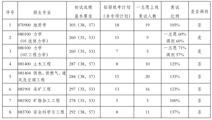 说明:公司一志愿考生上线比例介于100%~120%,且一志愿复试合格生源能满足招生计划的专业,将不再进行调剂。