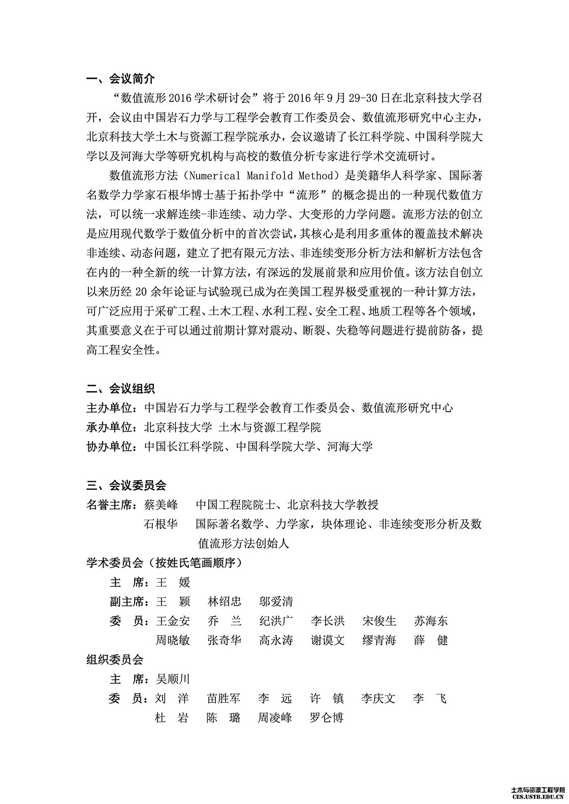 【学术会议】数值流形2016学术研讨会·北京·9月29-30日