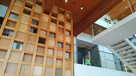 8月9日,为了解木结构的发展和在城市建设中作用,实习团前往大阪木材中介会馆参观学习。大阪木材中介会馆位于大阪市中心,是日本首座耐火木造办公楼,荣获第13届最佳环境共生奖、日本国土交通大臣奖,以及日本最佳设计奖等诸多奖项。