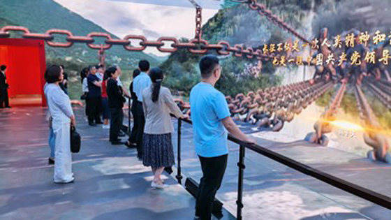 在这次观展过程中,全体党员还在红军长征沉浸式“4D+六面”体验区透过全景LED显示屏重温了80多年前的长征场景。“亲身”体验了红军长征途中血战湘江、强渡乌江、飞夺泸定桥、爬雪山、过草地等惊心动魄和枪林弹雨的景象,每一位党员都深刻地体会到了革命胜利的来之不易。孙春宝教授在看完影片后谈到“‘每一代人都要走好自己的长征’,作为大学教师,要坚定理想信念,以长征精神来鼓励自己在科研的道路上攻坚克难、永攀高峰。”