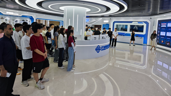 活动伊始,员工们受邀参观了矿冶科技集团有限公司展厅,马朝阳详细介绍了公司的党建工作、发展历程、业务范围、人才队伍和突出成果。在工作人员指导下,员工们开展了动手实践,部分员工戴上了VR头盔,模拟参与金属矿地下开采凿岩、爆破、运矿等作业过程;还有部分员工动手操作控制档杆,模拟开展了矿石破碎装置远程遥控等,极大地增进了员工对采矿工程的专业的认知、认同与归属感。
