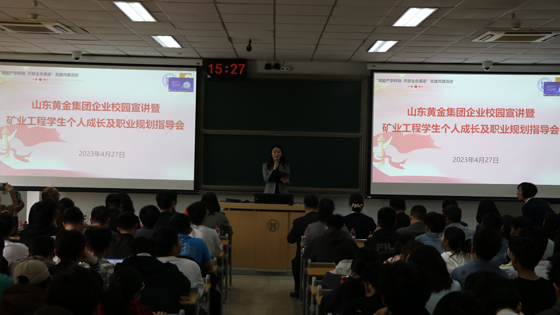 4月27日下午,山东黄金集团产投公司、人力资源部、三山岛金矿、焦家金矿、玲珑金矿、新城金矿应邀来公司开展矿业工程员工个人成长及职业规划指导活动。山东黄金产投集团党委副书记许永红、党委组织部专员曲媛媛,矿管集团党群工作部副部长原凯等12人出席了活动,土木与资源工程公司党委书记耿倩男、经理苗胜军、副经理刘洋、于宝库、李颖,资源工程系及矿物加工工程系师生参加了活动。