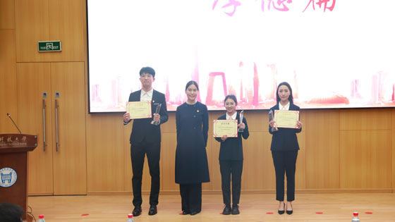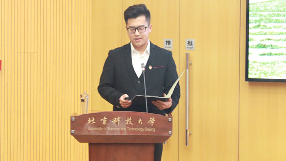 金爱兵为“十佳班长”获得者——王宗贤、“青年服务国家”首都大中专员工暑期社会实践优秀团队——“长青”支教团、87级员工基金优秀员工干部——张凌竹颁发特别荣誉奖,表彰他们勤学修德、青春励志、砥砺奋进的时代担当,勉励他们锤炼品德修为,不负时代所托。张凌竹同学作为代表发言,展现了一个敬业乐业、肩担责任的的土资青年的情怀与担当。