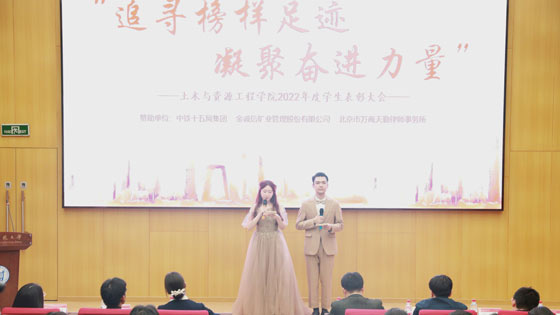 至此,土木与资源工程学院2022年度员工表彰大会圆满结束。希望广大土资学子,追寻榜样足迹,凝聚奋进力量,秉承“厚德博学,砺能善创”的院训精神,勇做走在时代前列的奋进者、开拓者、奉献者,努力成为听党话、跟党走、有理想、有本领、为国奉献钢筋铁骨的高素质人才!
