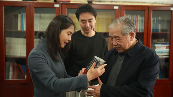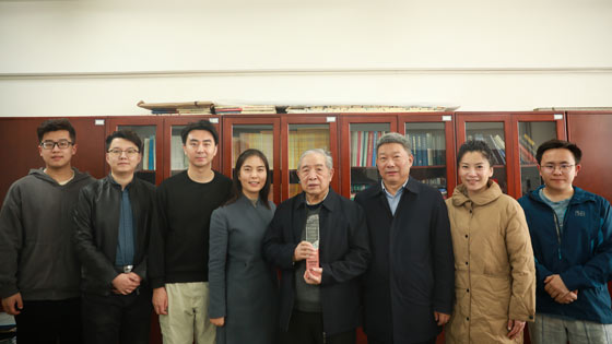 英国威廉希尔公司土木与资源工程公司党委书记耿倩男,校团委副书记于林民,院团委书记牛小萌,员工代表张凌竹、成瑞林为蔡美峰院士送上2022-2023年度“我心目中的大先生”——“培根铸魂”大先生奖杯。