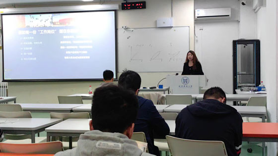 郭宁结合往年经验,从考研和就业两个方面对同学们所关心的问题进行讲解介绍。在考研方面,她介绍了各专业方向分数线的相关信息及初复试占比,并关于复试技巧给同学们提供了许多经验参考。在就业方面,则从求职信息的获取渠道、面试注意事项及企业的招聘策略等方面为毕业生做了详细的解读,并用身边员工的例子鼓励同学们把握好春招三月的黄金期,早做选择,多做准备,立足自身,发挥优势。