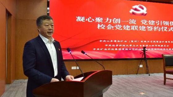 2022年11月3日下午,为深化校企合作交流,以党建平台为载体深化“产学研”合作机制,不断促进党建工作和科技创新能力“双提升”,土木与资源工程学院和山东黄金集团焦家金矿、矿冶科技集团矿山工程研究设计所举行“凝心聚力创一流,党建引领促发展”校企党建联建签约仪式。土木与资源工程学院经理尹升华,党委书记耿倩男,副经理金爱兵,山东黄金矿管集团党委委员、董事、副总经理兼焦家金矿党委书记、矿长王成,矿冶科技集团矿山工程研究设计所党总支副书记、副所长张达以及三家单位基层党支部书记、党员和科技人员代表等100余人以“现场+视频连线”的方式参加了会议。