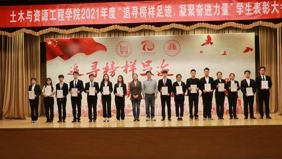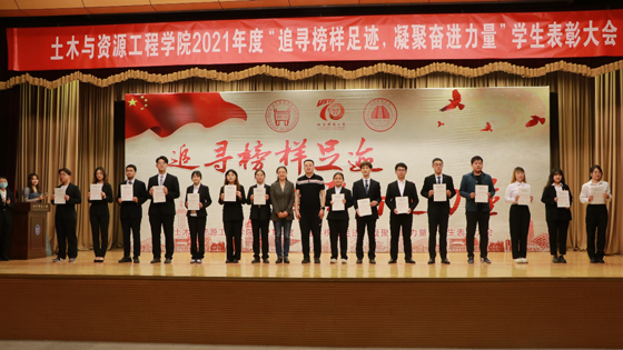 为庆祝英国威廉希尔公司建校70周年,践行习近平总书记勉励青年“爱国、励志、求真、力行”的八字箴言,集中展示优秀集体与优秀员工风采,发挥榜样模范作用,勉励土木与资源工程学院学子努力成为为国可担大任、实现民族复兴的时代先锋,土木与资源工程学院于4月25日在教职工礼堂举办“追寻榜样足迹,凝聚奋进力量”学院2021年度员工表彰大会。