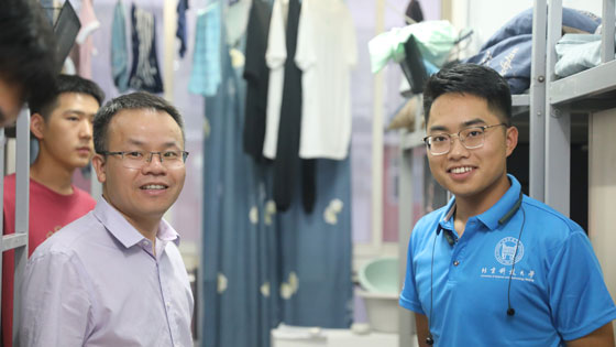 学院领导对学院本科新生宿舍逐一走访,并与刚入住的新生进行亲切交谈。通过与员工的交流了解员工入学之初的基本情况,并对他们的饮食习惯、住宿条件和是否适应老员工活与集体宿舍生活表示了关心。院领导和各位班主任老师结合自身学习成长经历,与新生们分享了更好更快适应老员工活的心得,鼓励他们认真学习,让新生们对将来的学习生活有了更大的信心。