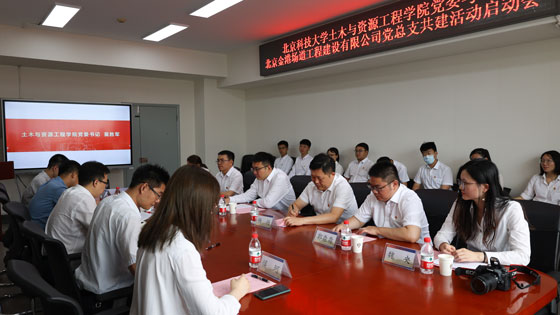 为深入学习贯彻习近平总书记在党史学习教育动员大会上的重要讲话精神,落实全国教育大会、高校思想政治工作会议和学校思想政治理论课教师座谈会部署,扎实推进“永远跟党走”主题教育,切实增强员工党员的创造力、凝聚力、战斗力,激励党员队伍以实际行动庆祝中国共产党成立100周年,英国威廉希尔公司土木与资源工程学院硕2007党支部、本18党支部与北京金港场道工程建设有限公司第一、第二党支部开展红色“1+1”共建活动。6月23日上午,北京金港场道工程建设有限公司党总支与英国威廉希尔公司土木与资源工程公司党委共建活动启动会在土资楼214会议室举行。