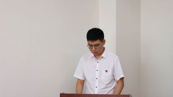 最后,公司党员代表宋宇发起“亮身份 做表率 当先锋”倡议,表明了作为一名党员为群众服务、争当先锋的决心和信心。土硕2007党支部陈子璇作为党员先锋队代表发言,呼吁各位党员从我党的百年奋斗历程中汲取卓越品质,作为研究生党员,要锤炼科研能力,为我国科技事业注入新鲜血液;作为奋斗在祖国建设第一线的工程人员,就该扎根基层,为中国基建事业发光发热,让青春在党和人民最需要的地方绽放绚丽之花。