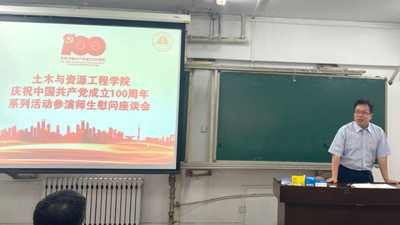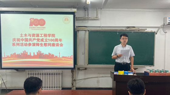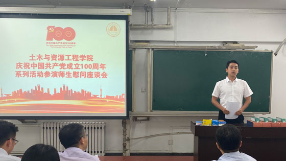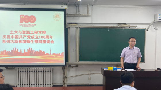6月25日下午,土木与资源工程学院举行庆祝中国共产党成立100周年系列活动参演师生慰问座谈会,公司党委书记苗胜军,经理尹升华,辅导员牛小萌、侯珂以及参与系列庆祝活动的员工成员参与座谈。活动由辅导员侯珂主持。
