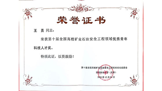 论坛期间,开展了“第十届全国高校矿业石油安全工程领域优秀青年科技人才奖”遴选工作,经专家组评选,公司资源工程系副教授王勇从20余所行业高校候选人中脱颖而出,荣获全国矿业石油安全领域优秀青年科技人才奖。据悉,本年度该奖项采矿工程领域仅入围4人。