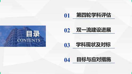 会上,金龙哲经理传达了学校对人才引进、人才培养质量以及人才培养新举措、学科声誉、双一流建设和学科评估等方面的工作精神,对学院围绕“十四五”发展规划的制定工作进行了布置。