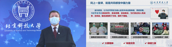 本次全体师生共上一堂课的活动坚定了我们的信心,增强了北科师生员工的凝聚力,面对新冠病毒感染肺炎疫情这场挑战和考验,作为北科大教师,在当下的艰难时期,我们也许不能做逆行的白衣天使,但我们可以做员工的引路人,勇于进取,不负韶华,希望能为学校、为祖国交上一份满意的答卷。