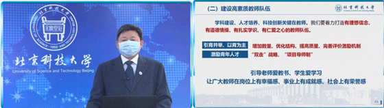 武书记发表了题为“铸钢铁战‘疫’防线 扛硬核北科担当”的讲话,与大家交流了学校疫情防控及近期主要工作,同时向全体师生吹响精神集结号、发出思想动员令,鼓励大家要满怀信心、凝聚力量、行动起来,在做好疫情期间个人防护前提下,将注意力回归课堂、回归教学、回归科研,并盼望大家健康平安踏春而归。