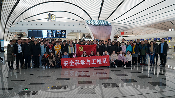 2019年12月17日下午,在安全科学与工程系主任张英华教授、贾水库教授、李铁教授、龚敏教授、副主任黄志安副教授以及系里其他老师的带领下,安全工程专业19级本科生前往大兴国际机场参观学习。