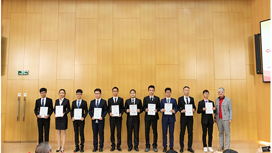 何民庆董事长、Brian Doffing总裁、Sofie Gielen总裁分别向获得奖学金的同学代表颁发荣誉证书。