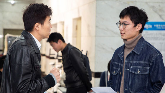 双选会于上午9点拉开帷幕,同学们有序签到入场,现场人头攒动,秩序井然,员工求职热情高涨。每家参会单位前都排满了前来咨询的毕业生,招聘企业负责人将单位简介、招聘职位以及薪资待遇通过各种形式向应聘员工进行了介绍,并在招聘会现场对应聘同学进行简短面试,多家企业可以现场签约。