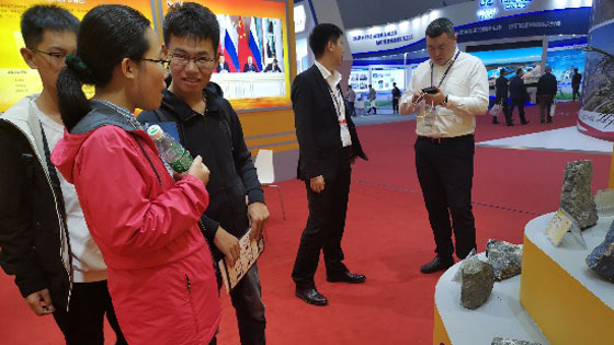 参观期间,员工在各位老师及小班主任的组织下开展活动。同学们认真聆听带队老师以及展位负责人的讲解,初步认识了立环高梯度磁选机、智能传感分选系统、频率谐振采集器、地面钻机、无人驾驶采矿车、新型地质勘探无人机等先进的仪器设备,通过全息投影、VR等先进技术体验并学习到了基础的矿业知识,同学们热情高涨,积极与展位负责人互动沟通,了解了智能化的矿产勘查、开采、加工、技术装备。同学们对珠宝展区及各企业展位中的矿石标本等具有浓厚的兴趣,在老师、工作人员的讲解下也了解到了珠宝、贵金属等的生产制作过程,对矿业有了更新、更直观的认识。