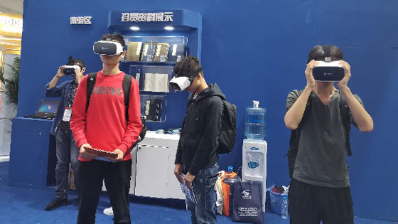 (北科大毕业生张黎翔用全息投影为同学们讲解矿业仪器设备)