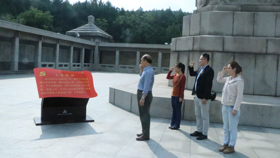 为落实本次主题教育工作中“寻足迹”“守初心”的具体要求,深刻领会中国共产党人在争取民族独立、实现人民解放过程中所秉持得不忘初心,不畏艰难,团结群众,勇担使命的大无畏精神,继承和发扬老一辈革命家“舍小我”“为大我”的全局意识和“紧紧依靠群众,军民团结作战”的优良传统,纪洪广书记一行前往淮海战役纪念馆,瞻仰淮海战役烈士纪念塔,缅怀革命先烈事迹,在烈士纪念塔下重温了入党誓词,进一步加深了对入党誓言的理解,更加深入地认识到“不忘初心,牢记使命”主题教育的现实意义和重要性。