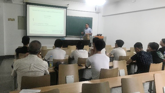本次课程内容为《Geotechnical Numerical analysis and risk assessment》(岩土工程数值分析及风险评估)。主要从如何获取岩石信息及矿山岩石的不确定性展开,结合目前广泛使用的数值模拟软件进行讲座。Davide Elmo 教授多年来致力于矿山岩石力学工程问题的数值模拟研究,对矿山岩石力学工程问题有着丰富的经验。本次讲座Davide Elmo 教授结合自身的教学经验为同学们讲解了目前前沿的研究成果。内容深入浅出极大的提高了同学的学习兴趣。