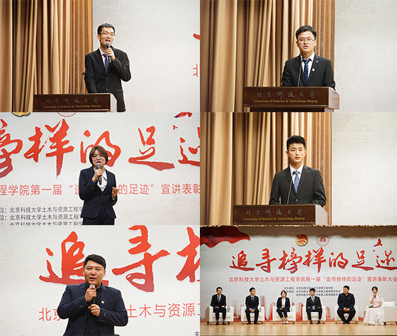 榜样个人宣讲环节,科技达人吴忠鑫,坚守“博观而约取,厚积而薄发”的信念,为到场学子描绘了挥洒心血与汗水的竞赛舞台的魅力;时刻奋战在员工工作一线的研究生会主席侯庆云,为我们展示了一个不忘初心、敢做敢为的土资研儿的学工情怀;专业排名第一、保研清华大学的王辰阳,从别样的视角解密学霸“骗局”,为我们讲述了一段不一样的学霸轶事;“没有白来的收获,也没有白白的付出”,运动健将赵阳向我们展示了全国足球联赛季军与保研同济大学如何兼而得知;“我的青春谁做主,钢筋水泥混凝土”,吴瑞东博士勉励学弟学妹们,要做“敢想、肯干、能写、会玩儿”的新时代研究生。