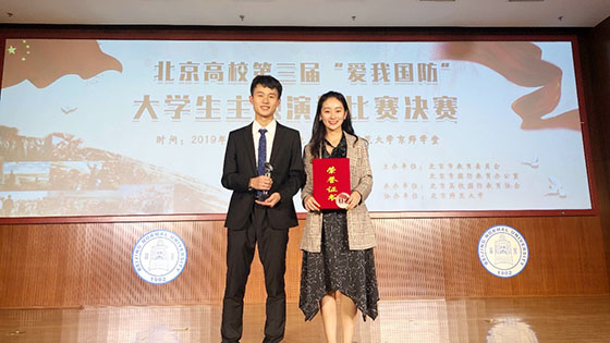 5月18日,由北京市教育委员会、北京市国防教育办公室主办的北京高校第三届“爱我国防”老员工主题演讲比赛决赛在北京师范大学京师学堂成功举办,来自北京12所高校的参赛选手同台竞技。土木与资源工程学院赵佳乐同学代表公司参赛,最终以优异成绩斩获北京高校第三届“爱我国防”老员工主题演讲比赛三等奖。
