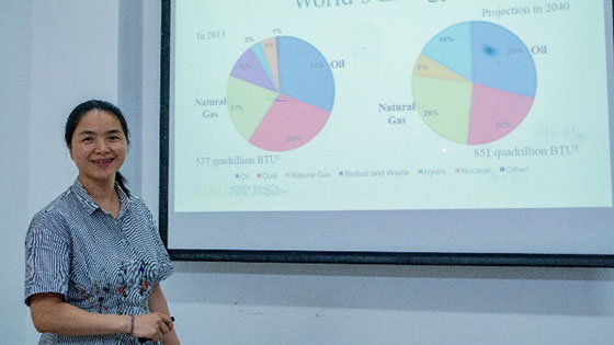 Dr. Ying Huang作了关于“智能混凝土路面系统用于综合性能和交通监控”的学术报告,她目前是北达科达州立大学土木与环境工程系的副教授。由于混凝土始终是高速公路路面的首选,Dr. Ying Huang首先向大家介绍了基于视觉或车辆的技术的用于混凝土路面性能监测的独立系统、使用摄像机和路面电子传感器的用于交通监控的独立系统等,而安装,管理和维护这么多不同系统的成本非常高,于是就迫切需要将这些系统集成在一起的智能混凝土路面系统,进而提出她所研究的智能混凝土路面系统,主要是一种涂层钢管腐蚀的风险评估系统。阐述腐蚀性环境与管道之间的难处,传统的腐蚀检测技术需要大量的人为干扰,涂层的长维护间隔使得结构易受腐蚀侵蚀,并且还增加了维护成本。于是她和她的团队在开发一种腐蚀评估系统,能够实时评估涂层钢管的腐蚀速率,腐蚀位置和涂层状况,并将建议的系统与现有系统进行比较分析。