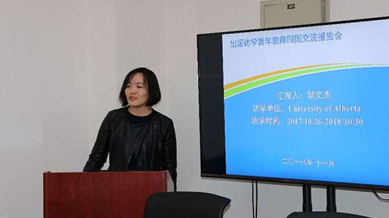 随后,来自土木工程系的兰成明、矿物加工工程系的邹文杰、建筑环境与能源工程系的邵晓亮以及安全科学与工程系的高娜等四位老师依次就国外的科研、工作和生活情况进行了交流分享。同时他们也表示作为共产党员,不会参与任何国外宗教活动。四位教师分享的国外校园和实验设备状况、先进的理论知识、多彩的生活环境、出国访学的心得体会给参会的教师们留下了深刻的印象。