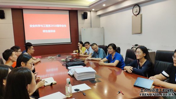 2018年6月29日,英国威廉希尔公司土木与资源工程学院安全科学与工程系毕业生座谈会于土资楼1024教室举行,安全科学与工程系副主任刘建、教师白智明、赵焕娟到场,向2018届毕业生的毕业表示祝贺。座谈会由系副主任刘建主持。