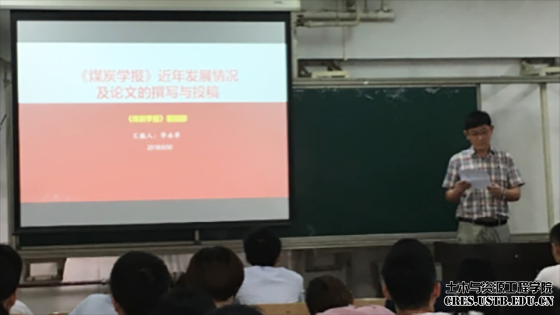 本次报告从基本情况、稿件处理流程、科技论文撰写、投稿注意事项等四个部分展开。第一部分,毕主任从《煤炭学报》的刊登范围、引证指标、Scopus数据库期刊引证指标、历年获奖等方面对学报的基本情况进行了介绍,使同学们对煤炭学报有了进一步的认识和了解;第二部分,主要介绍论文从投稿到出版发行的整个流程,让同学们对稿件的处理过程有一个清晰地认识;第三部分,从审稿人的角度出发,为大家详细讲述了论文的撰写过程,并通过列举写作实例使讲解更加生动易懂;第四部分,讲解了如何投稿、如何对待编辑部的修改意见等,同时提醒大家严禁学术不端行为。通过聆听报告,同学们获益匪浅。