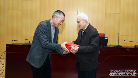 活动开始,吴爱祥副董事长致欢迎辞。他向现场观众介绍了钱七虎院士在土木工程领域做出的卓越贡献,同时对钱院士为公司科研、团队建设、人才培养等工作做出的大力支持与帮助表达了诚挚感谢。希望广大师生向钱院士学习严谨治学、学无止境的品质,不断加深对专业知识的学习,将来更好的服务于社会,贡献于祖国。吴爱祥代表学校向钱院士赠送寓意“求实鼎新”的纪念鼎。
