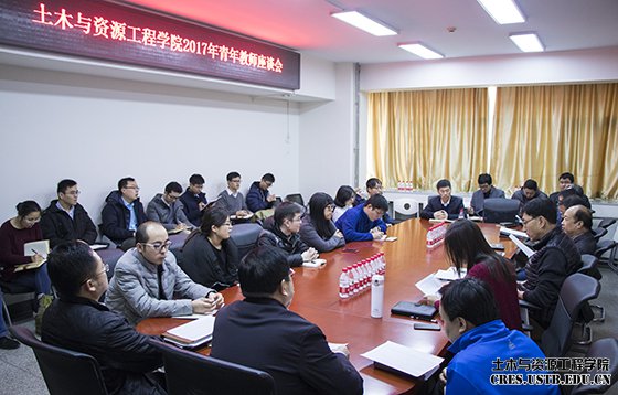2017年12月14日下午土木与资源工程学院召开了青年教师座谈会,深入了解青年教师所思所想,听取青年教师的心声,切实帮助解决实际困难。学院领导班子全体成员、各系主任和近三年来院工作的青年教师畅谈了来校后工作、学习、生活情况。