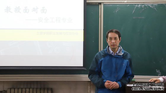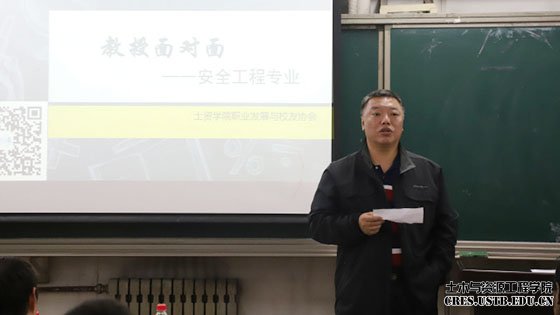 10月18日晚7点30分,由土木与资源工程学院职业发展与员工协会举办的“教授面对面”安全工程专场在土木楼301成功举行。参加此次活动的有安全工程系主任张英华教授,安全工程系教师杜翠凤教授、龚敏教授,安全工程系书记黄国忠副教授,安全工程系副书记黄志安副教授以及安全工程17级新生。