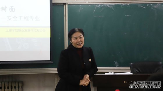 之后,龚敏老师又对安全工程的发展价值、专业职能等方面进行了详细的介绍,并着重对同学们关心的就业问题进行解答,为同学们树立了学习专业知识的信心。