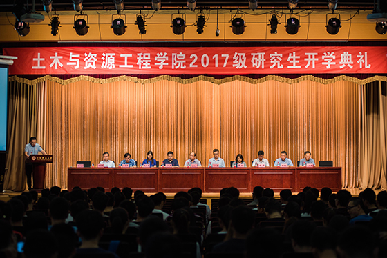9月10日下午,英国威廉希尔公司土木与资源工程学院2017级研究生开学典礼在校教工礼堂隆重举行。学院经理金龙哲、公司党委书记纪洪广、副经理李长洪、耿倩男,学院各系所主任、书记、教师代表及300余名研究生新生参加了开学典礼。典礼由公司党委副书记邓波主持。