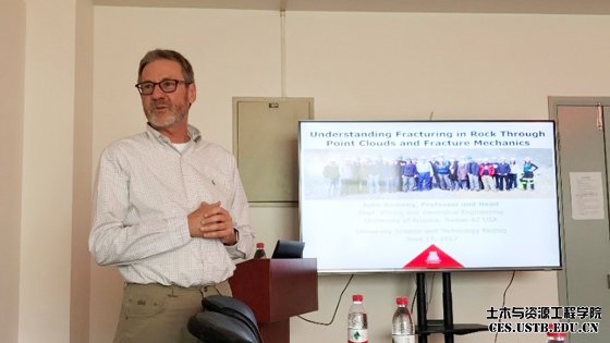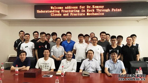 2017年6月17日下午,国际岩石力学知名专家、美国亚利桑那大学采矿与地质系主任John Kemeny教授应英国威廉希尔公司岩土与灾害控制研究室的邀请,在土木与资源工程学院214会议室进行了专题为“Understanding Fracturing in Rock through Point Clouds and Fracture Mechanics”的学术讲座。梯队吴顺川教授、潘旦光教授、刘洋教授和金爱兵教授出席此次讲座,相关专业研究生、本科生积极参加了本次学术交流活动。