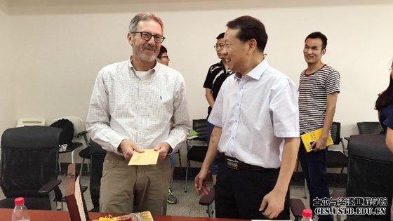 针对传感器在岩桥面积估算及岩石稳定性监测中的应用,课题组老师与Kemeny教授展开热烈讨论;其他听取报告的同学,也针对自己感兴趣的专题踊跃发言并与Kemeny教授积极互动,教授的幽默诚恳数次引发欢声笑语,现场一度十分活跃。