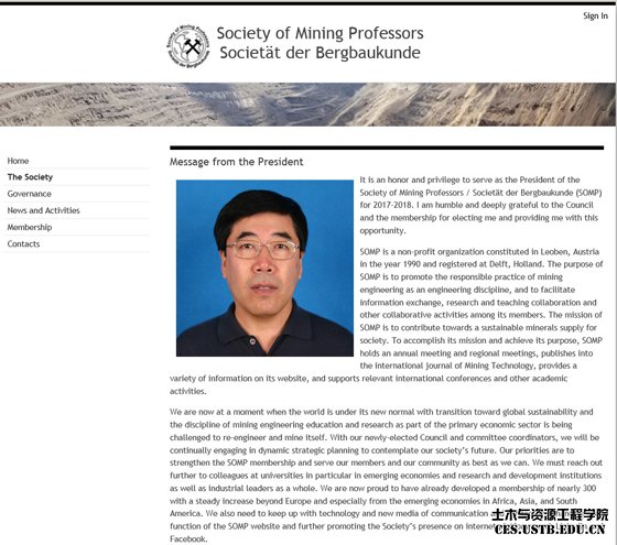 公司李仲学教授于2017年7月3日至6日在意大利举行的“国际矿业教授学会”(Society of Mining Professors, SOMP)第28届学术年会上,由先前当选的候任主席(President-Elect)正式确认为学会主席(President 2017-2018)。