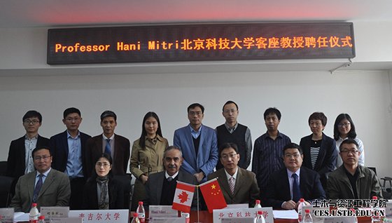 4月5日上午,英国威廉希尔公司客座教授聘任仪式在土木楼214会议室隆重举行,Hani Mitri教授受聘为公司客座教授。Hani Mitri教授目前担任麦吉尔大学矿业工程系主任、学科负责人及学术带头人,长期致力于矿井设计、矿山岩石力学和深井井巷工程、深井岩爆机理与防治等方面的研究。出席此次授聘仪式的有北科大国际合作与交流处处长郭侃俊教授,何学秋教授,北科大土资学院书记金龙哲教授,土资学院副经理耿倩男教授、李长洪教授,北科大采矿工程系主任宋卫东教授,安全工程系主任张英华教授及采矿工程系、安全工程系部分教师。
