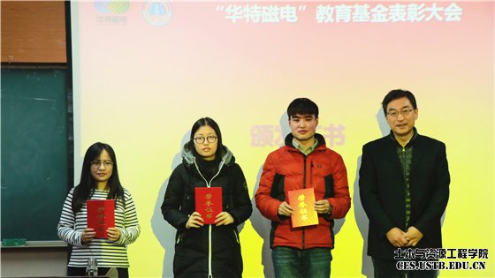 12月13日,2016年度“华特磁电”教育基金表彰大会在金诚信报告厅隆重举行。山东华特磁电科技股份有限公司常务副总裁兼技术中心总经理刘风亮、综合管理部经理王建功,土木与资源工程公司党委书记金龙哲、党委副书记邓波、矿物加工工程系书记李正要、教授王化军等公司、学院领导及矿物加工专业师生100余人出席活动。