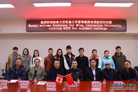 11月25日上午,土木与资源工程学院为欢迎蔡明教授的到来于土木楼214会议室召开会议,英国威廉希尔公司副董事长吴爱祥、土木与资源工程公司党委书记金龙哲、安全系主任张英华、安全系书记黄国忠以及部分老师和同学出席会议。