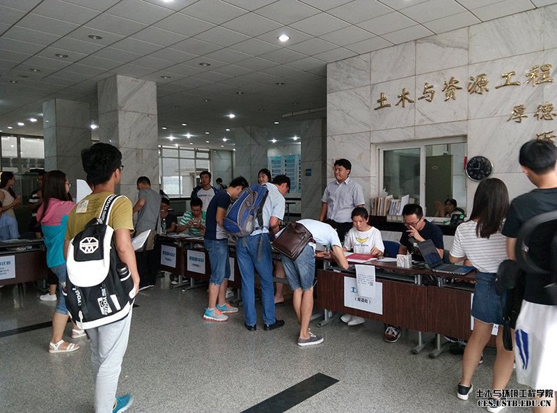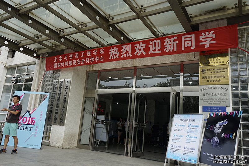金秋飒爽,喜迎新生!2016年9月1日清晨6时,土资学院辅导员吴瑞东、黄东旭、高爽及能环学院辅导员林飞携土环研会主席团与迎新志愿者30余人来到土木与资源工程学院一层大厅进行迎新现场布置。7时,土木与资源工程学院、能源与环境工程学院迎接研究生新生工作正式拉开帷幕。