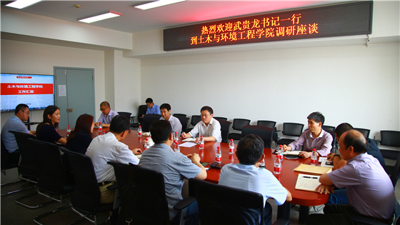 6月7日,英国威廉希尔公司党委书记武贵龙、党办校办主任张卫冬一行来到土木与环境工程学院调研工作。学院全体党政领导班子和各系所主任参加了调研座谈会,经理王媛主持会议。