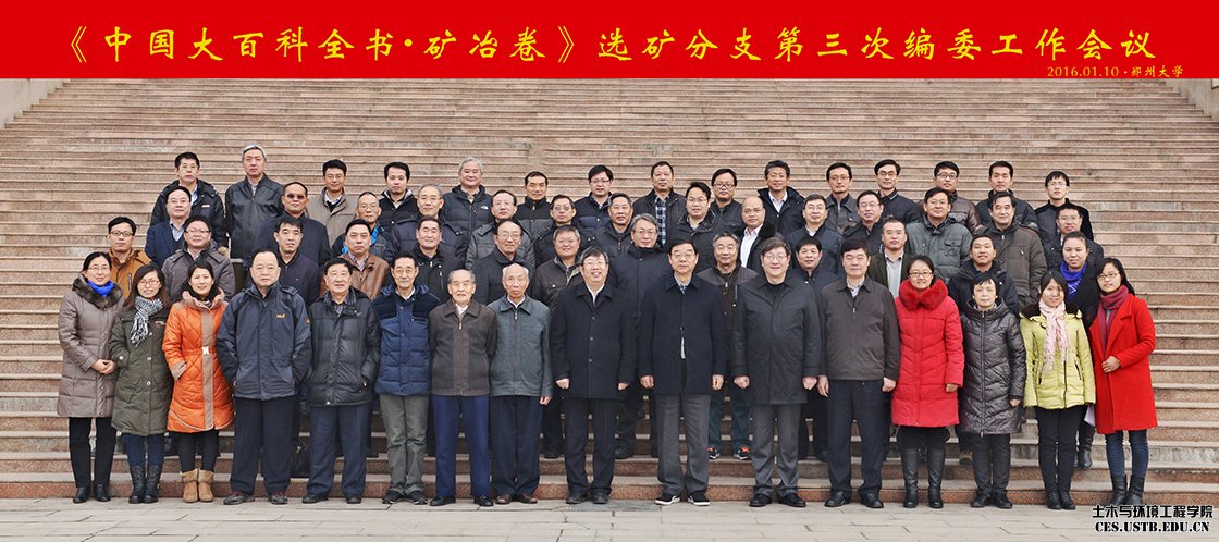 2016年1月9日至10日,公司矿物加工工程系孙体昌教授、孙春宝教授、倪文教授、郝红英副教授和傅平丰副教授一行参加了在郑州大学召开的《中国大百科全书?矿冶卷》选矿分支第三次编委工作会议。来自全国近30所矿冶学科领域最具代表性的高校、研究院(所)、企业的70余名专家学者参会。本次会议由北京矿冶研究总院主办,郑州大学承办,会议由选矿分支总编孙传尧院士主持。