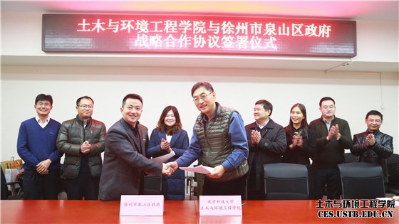 11月25日,土木与环境工程学院与徐州市泉山区人民政府战略合作协议签订仪式在土环楼214会议室举行。土木与环境工程公司党委书记金龙哲、徐州市泉山区副区长董博及双方相关方面负责人出席活动,土木与环境工程学院副经理耿倩男主持签约仪式。